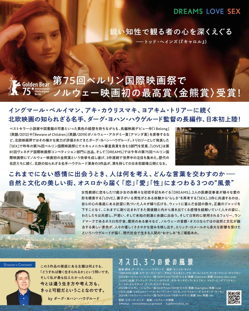 【オスロ、3つの愛の風景】ダーグ・ヨハン・ハウゲルード監督特集は、ただいま最終週(第3週)。 本日22日は『LOVE』の最終日です‼️このあと18:20から。是非。 x.com/BittersEnd_inc…