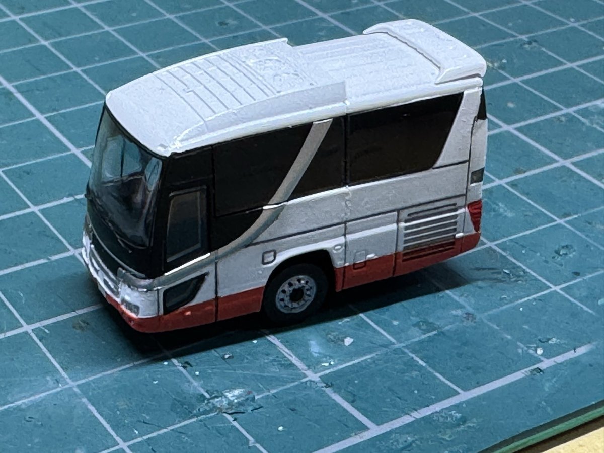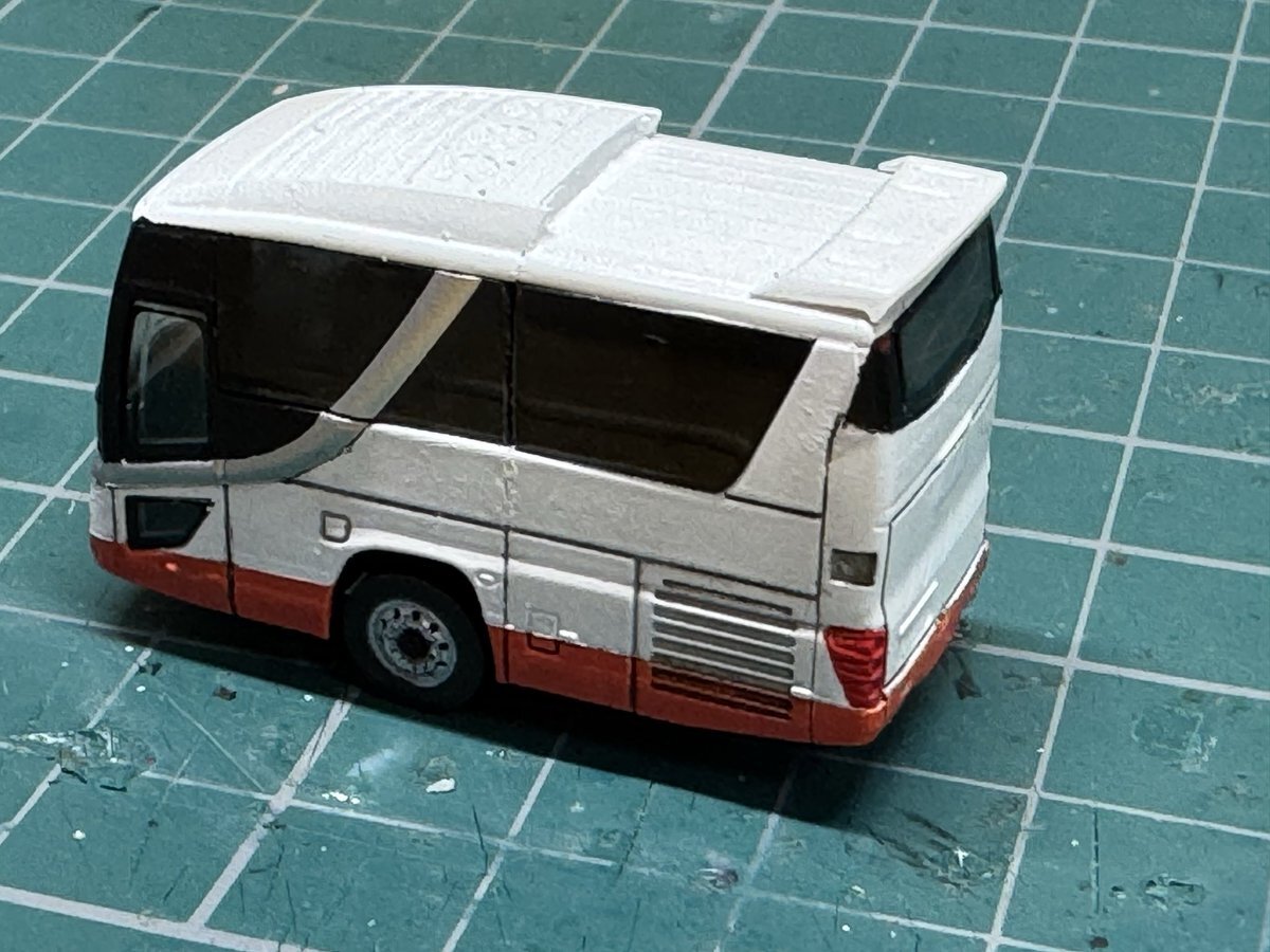 バスコレを改造してJBUS小松工場内展示場に展示されている1軸のセレガを作りました!!! しかもこいつ…動くぞ!? #バスコレ #Nゲージ #バスコレ走行システム pic.x.com/kaC2HepyCd