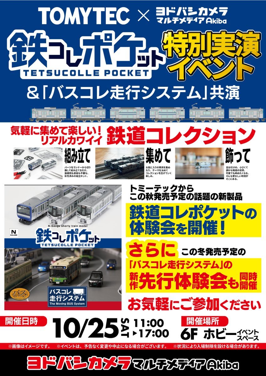 \イベント開催お知らせ/ TOMYTECの新商品「鉄コレポケット」の実演会が決定❗️ さらに今年の冬発売予定の「バスコレ走行システム」の 先行体験会も同時開催いたします✨ ぜひお越しください💁 #鉄コレポケット #鉄ポケ #バスコレ #ヨドバシAkiba ➡yodobashi.com/?word=%E3%83%9… pic.x.com/lpLxJfdiRt