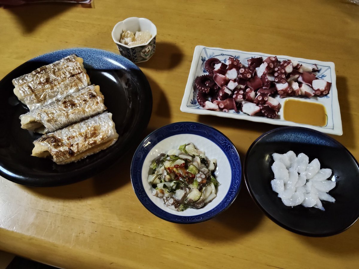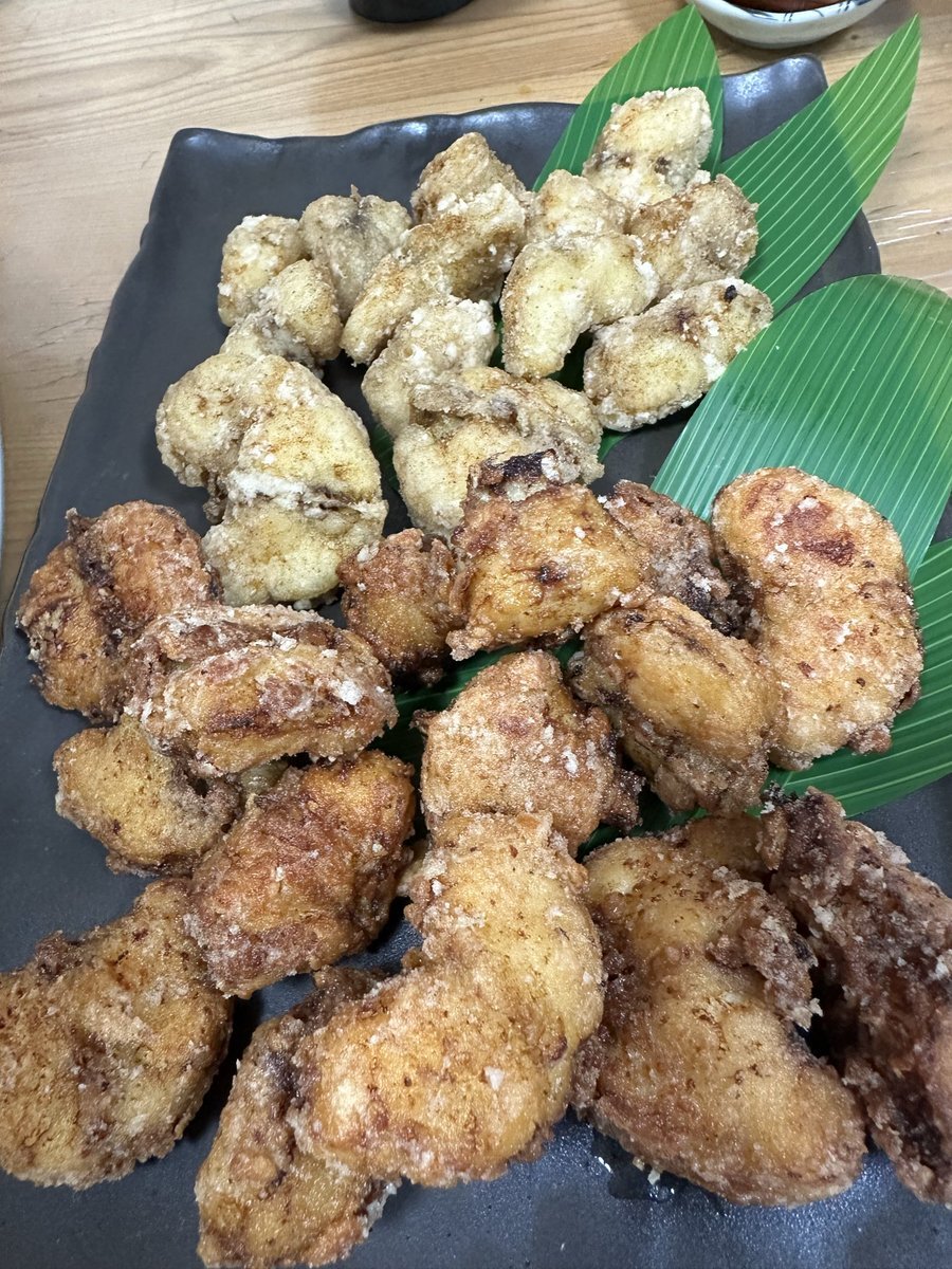 今日は娘が来たので今日釣れたフグで接待です。😊 ショウサイフグ、コモンフグの唐揚 ヒガンフグ、コモンフグの刺身 コモンフグの唐揚げは美味かったです。😁 娘はヒガンフグの刺身オシでした。😊 pic.x.com/QDvPBbDYAU