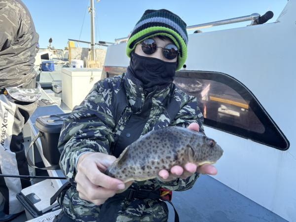 今日は千葉県大原沖でフグのカットウ釣りです。 フグもバラエティーです。😊 ショウサイフグ、コモンフグ、ヒガンフグ 楽しめてます。😊 今晩楽しみです!😁 #長福丸 pic.x.com/PzSLG7foUQ
