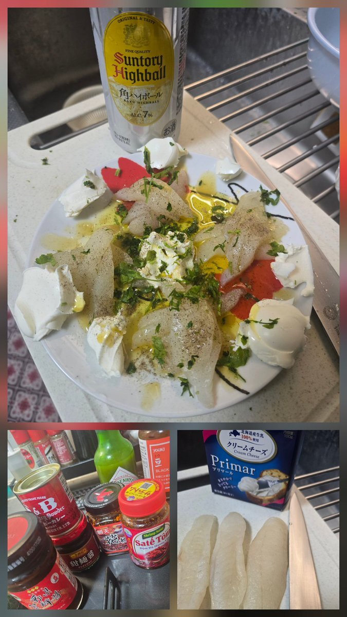 今日はお友達の引っ越し祝い等で人様のお宅にお邪魔に 例によって料理担当ですー 人数少なめだし余裕ですねー釣ってきた魚も持ってきました まずは2週間寝かせてから1週間弱燻製塩とピチッとシートで作ったヒガンフグの生ハムをクリームチーズとオリーブオイルタバスコイタリアンパセリで #晩酌 pic.x.com/AcggSWZ6ke