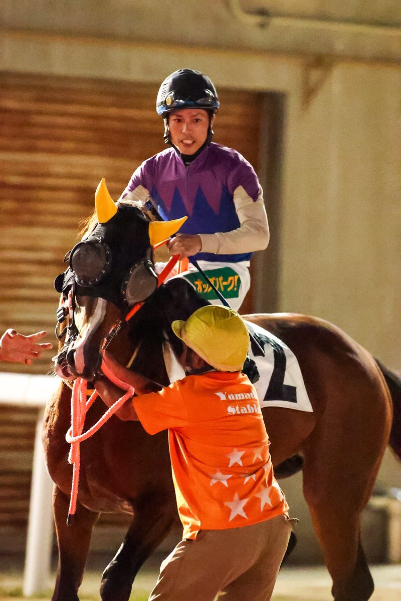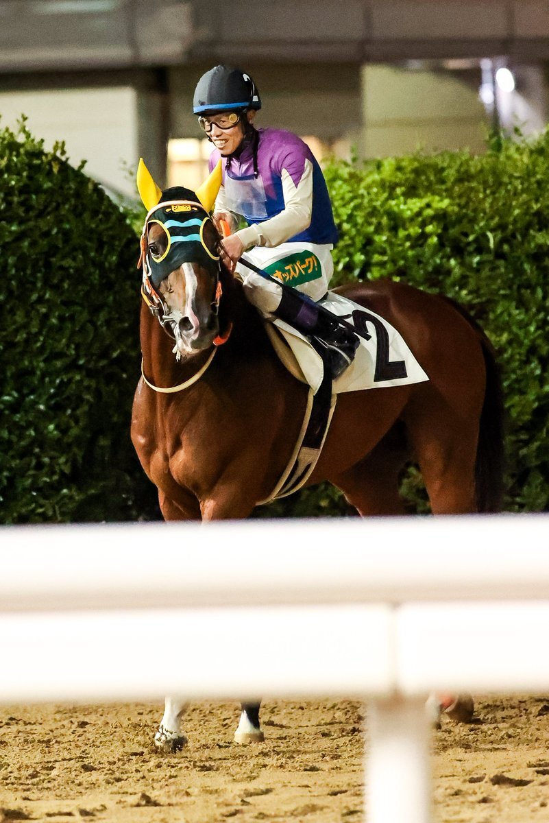 2025.10.11 佐賀10R オパール特選C1 ダ1,750m ファイナルソード 2着 「もう馬場入りもだいぶ馴れたよねぇ」なんて言ってたら、久しぶりに危なかった😱 本当に放馬しなくて良かった💦 レースは西森君のイン突き強襲で逃げ馬を3/4馬身まで追いつめた所がゴール🏁 惜しかった🥲 #ファイナルソード pic.x.com/0sOkQO6MXk