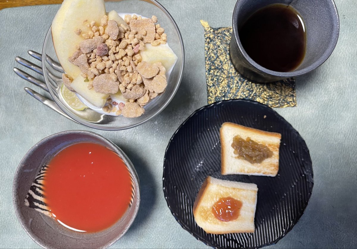 おはよう朝食☕️ 🍅ジュース🍋 梅ジャム、ベトナムジャム🍞 🍎シリアルヨーグルト🥛 今日はちょっと運転してみる 来週に免許高齢者講習あります😅 pic.x.com/IktU8aFMmT