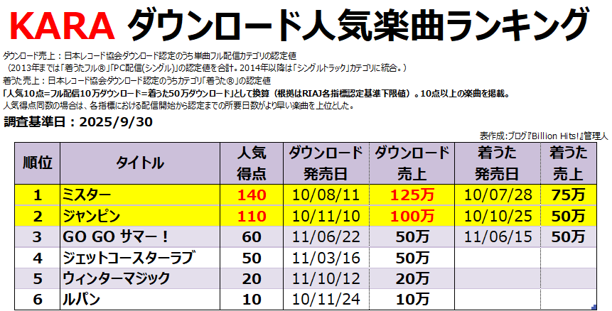 KARA デジタル人気楽曲ランキング 1 ミスター 2 ジャンピン 3 GO GO サマー! 4 ジェットコースターラブ 5 ウィンターマジック 6 ルパン pic.x.com/BApdkyayTW x.com/musicnever_die…