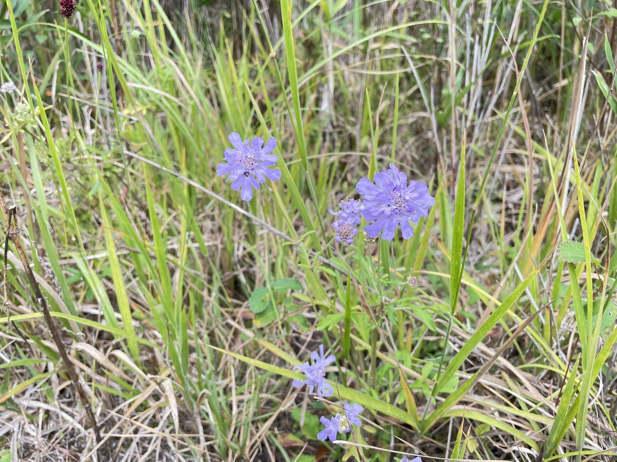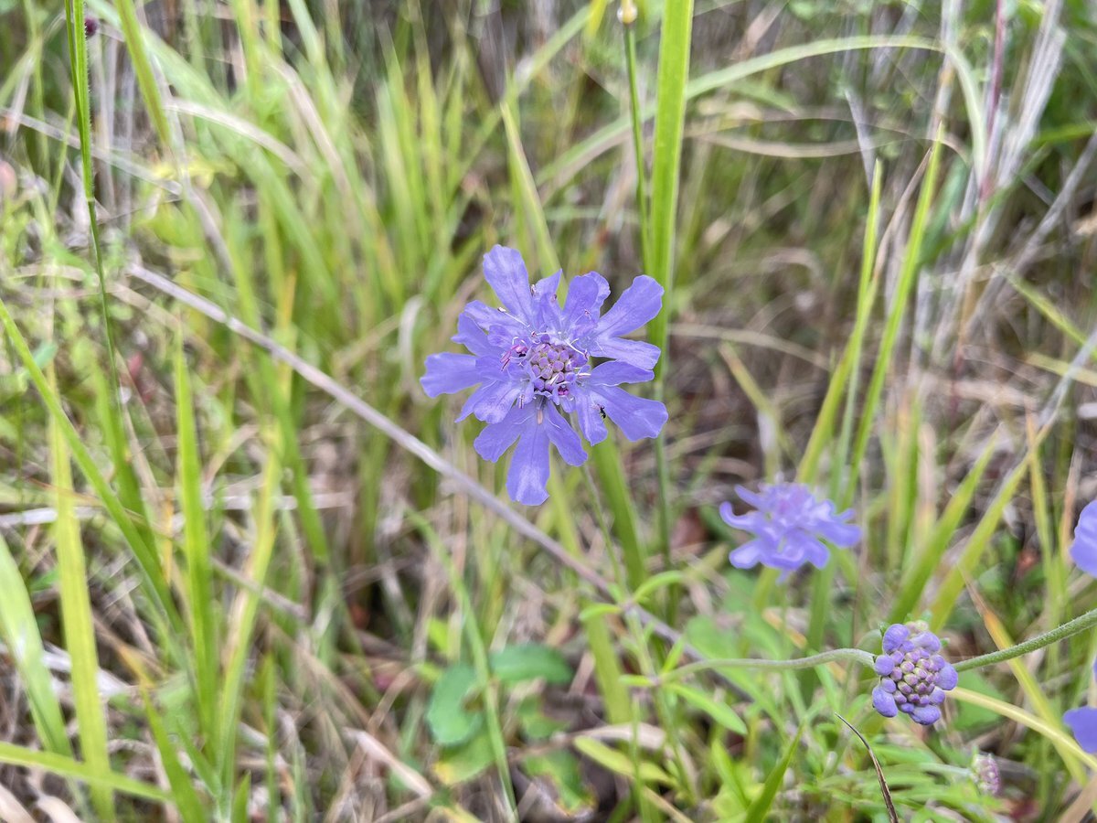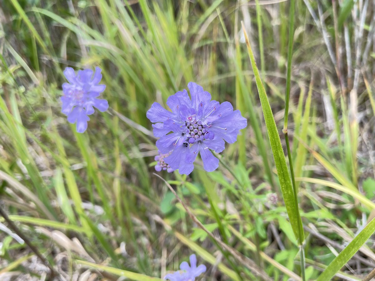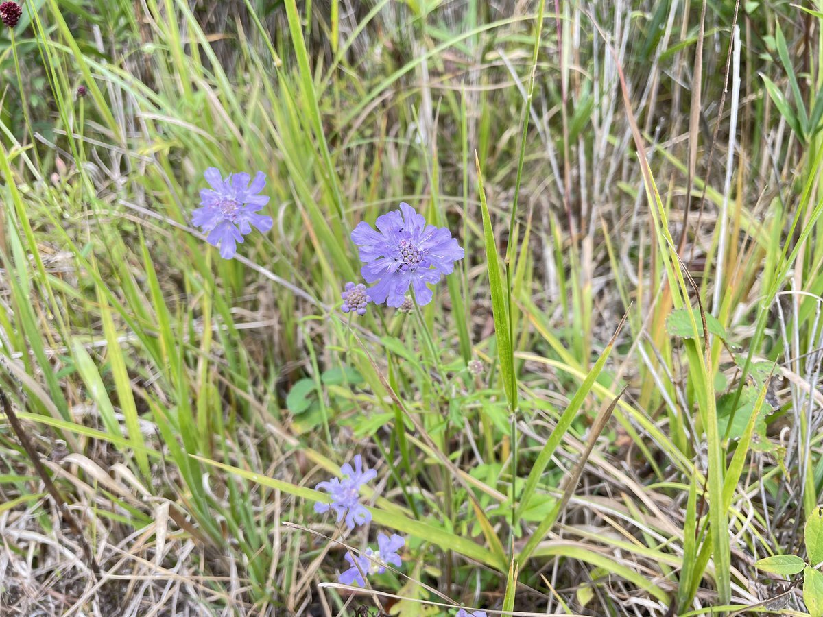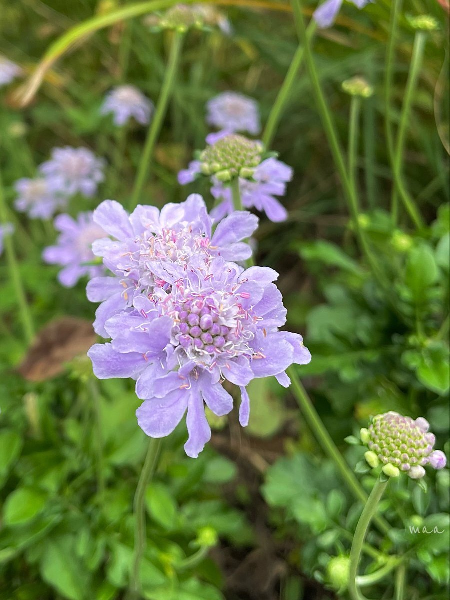 これはマツムシソウの花です。日当たりの良い高原や山の草地に生えるマツムシソウ科の二年草で、日本特産の代表的な秋草。草丈30~60cm、群生して咲くことが多く風に一斉に揺られる様はこれぞ秋の風情、の感!マツムシの鳴くころ咲くのでこの名があるとか。 pic.x.com/xBOB3G2tX7