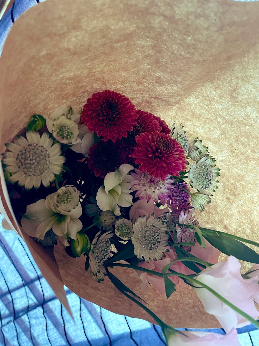 毎年誕生日にはいつものお花屋さんにお任せでアレンジメントをオーダーします。年々落ち着いた雰囲気になってくるなあ。今季初のチューリップを入れたよ、とのこと。赤いマツムシソウ、初めて見た。色々詰まってます✨ 自分で買ってるわけだけど、プレゼントもらう感じで嬉しいの。幸せなワタシ…… pic.x.com/YfMdWo5mX4