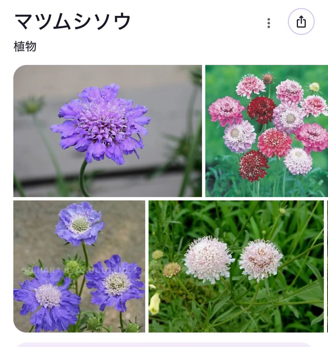返信先:@kakelun8910スカビオサ(西洋マツムシソウ)の品種でしょうか…?紫をゆかりとも読むようなので紫色の花の品種の名前にも使われるみたいですね…!カーネーションにもあるみたいです! 園芸品種名含むとすごく多くなるので今回の元ネタはユーカリかな…と思います。品種名でなく花自体の名前であったらすみません