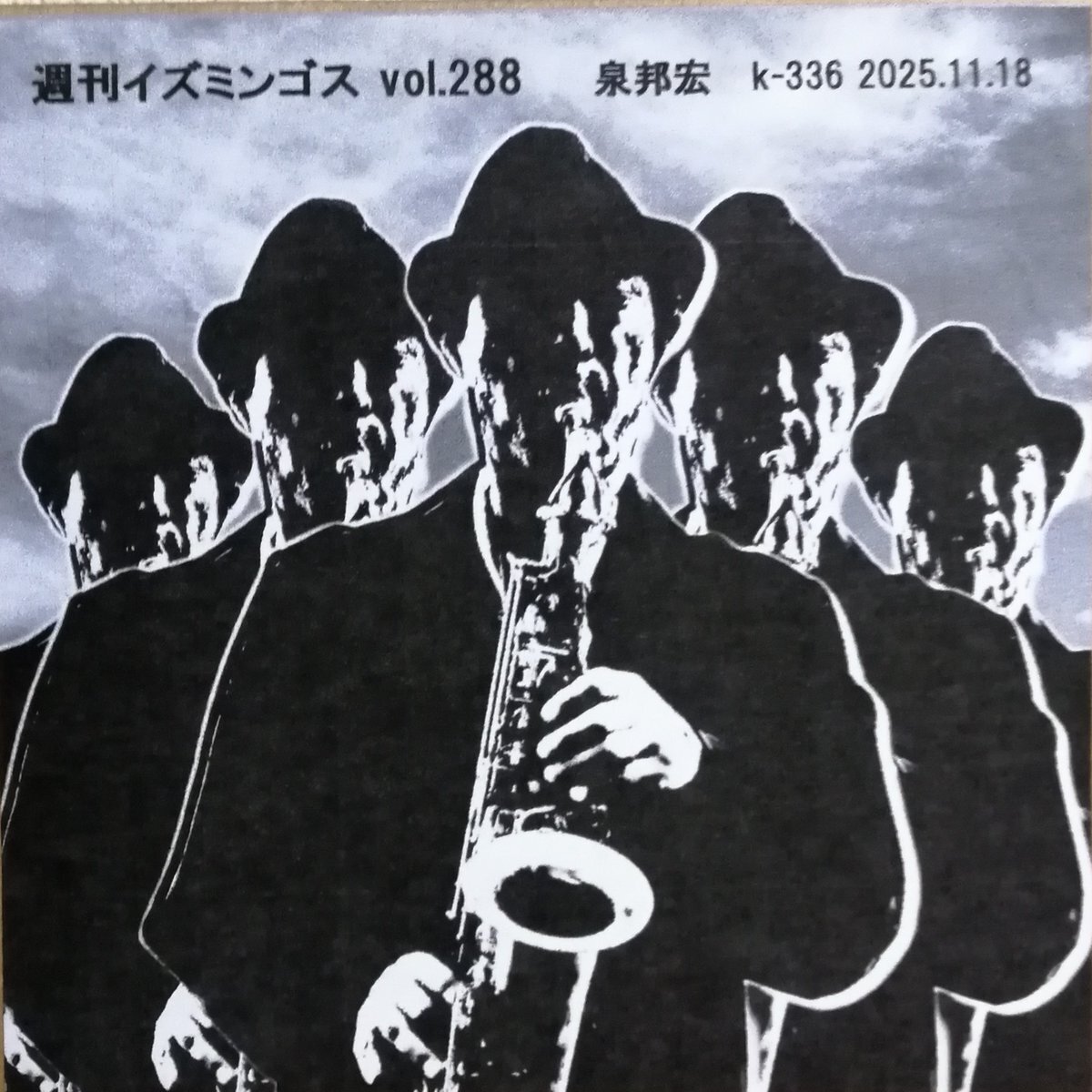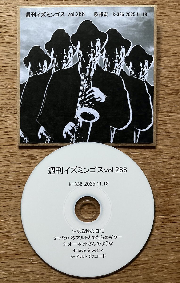 泉邦宏『週刊イズミンゴス vol.288』 アルトサックス構えたモノクロジャケで硬派な内容かと思ったらキャッチーでポップな曲多し、もちろんダブ地獄も混沌も健在ですが。音抜け良く聴きやすいタイプ多いです、通販頼むか迷っているあなた、今週あたりトライしてみては。 pic.x.com/bNqOMWatsI