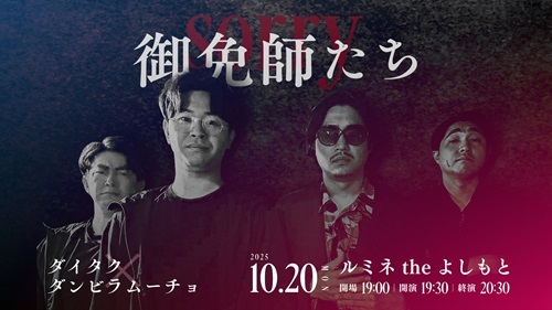 🎙本日のダイタクさん📢 🎙️ 御免師たち ルミネtheよしもと 開場19:00|開演19:30|終演20:30 ダイタク/ダンビラムーチョ