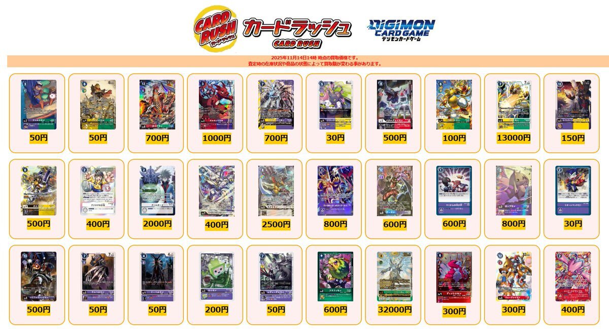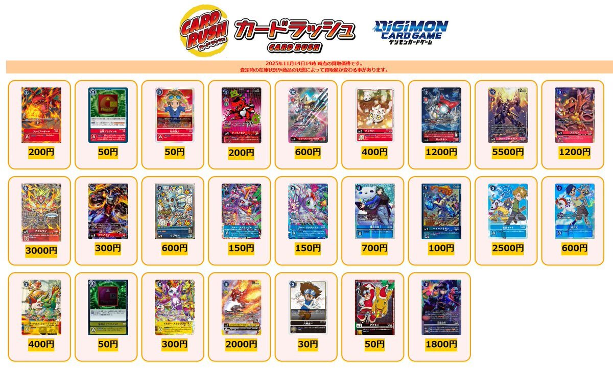 #デジモンカード 買取情報 ファルコモン P-142 ¥50 レオモンX抗体 P-139 ¥50 ダイナモン(パラレル/illus:Tonamikanji) EX8-016 ¥700 ギルモンX抗体(パラレル/illus:Takase) EX8-009 ¥1000 マスティモンACE EX6-029 ¥700 ブラックテイルモン BT8-077 ¥30 メタルグレイモン(illus:NakanoHaito) BT8-067 pic.x.com/YUGo60lp4K