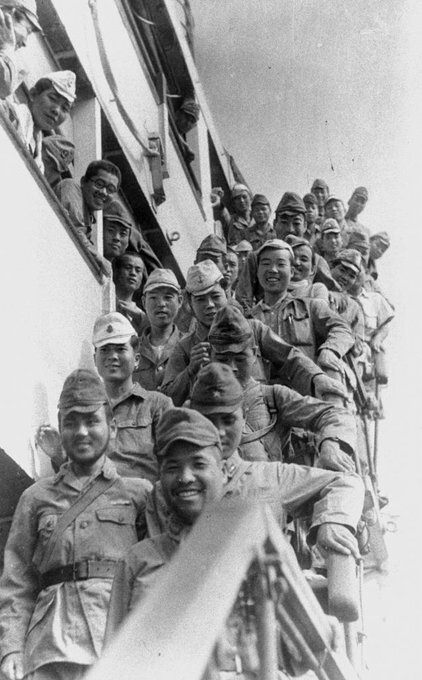 今日は、1945年(昭和20)最初の復員船・高砂丸が、中部太平洋メレヨン島から別府港に入港した日。1628人が復員。ようやく帰ってきた彼ら目に、終戦後の日本は、どう映ったのでしょう。器 pic.x.com/QYM8QMJytR