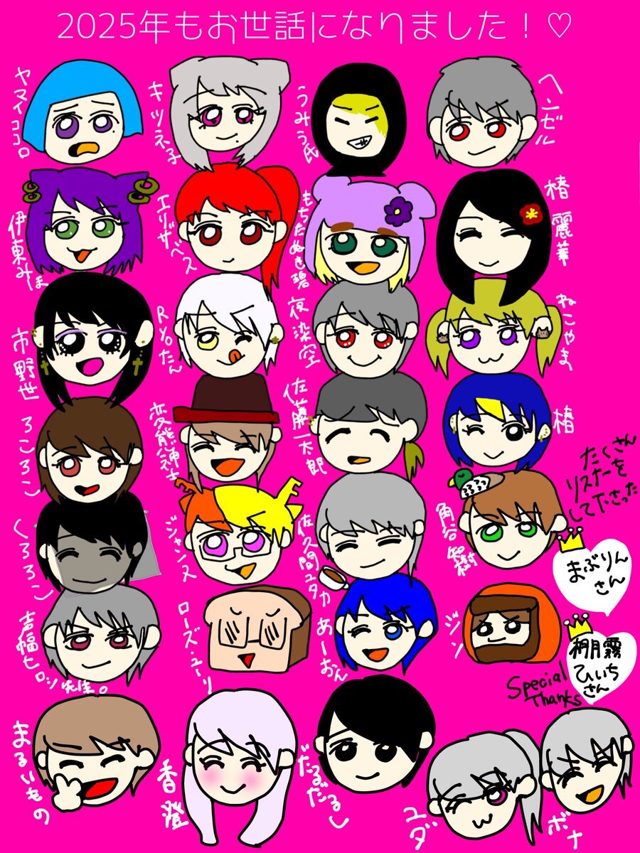 早めのご挨拶← 今年もたくさん劇して下さり、 リスナーに来て下さったり、 ありがとうございました🙇🏻♀️ もちろんイラスト描かせて頂いた(敬称略)以外の方々もありがとうございました🙇🏻♀️ 野良でご一緒して下さった方! Xで絡んで下さった方! 🗣️劇1.2度だけでも ご一緒して下さった方も!大感謝です🙇🏻♀️