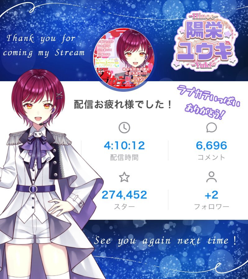 #おやすみVライバー みんな今日もおつひの! 陽栄ユウキだよ! スリーマンス3日目ラブカテ沢山ありがとう! Aランク初日を+4で終えることができてほんと感謝です!! このままスリーマンス入賞&ランクキープ目指してがんばりたい💪✨ 明日はしぱたらチャレンジ! 楽しむぞー! おつひの! pic.x.com/gKrVwzzpmG