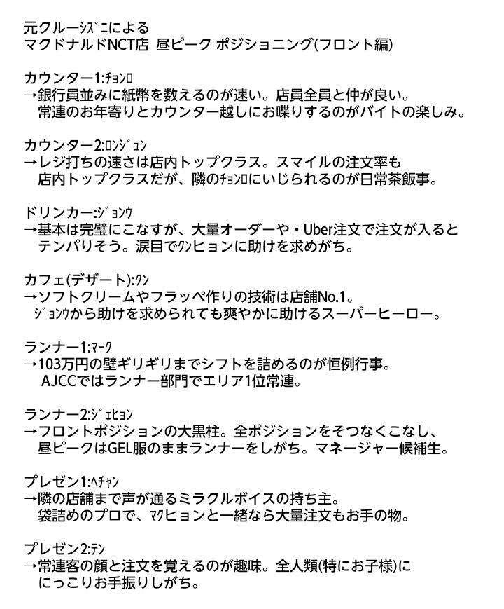 元クルーシズニによる マクドナルドNCT店 昼ピーク ポジショニング(異論は大いに認めます)