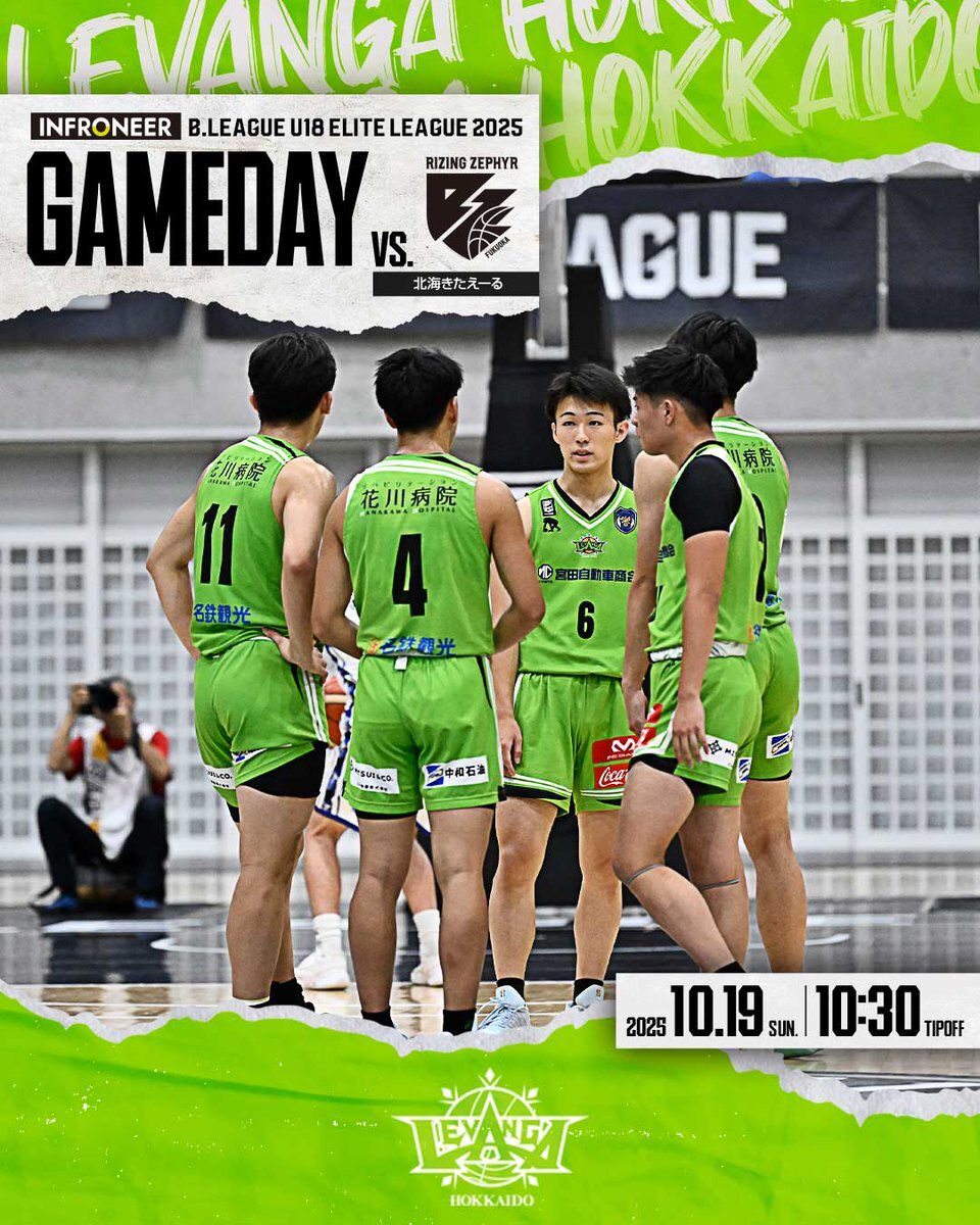 【U18】GAME DAY. 「インフロニア B.LEAGUE U18 ELITE LEAGUE 2025」 3戦全勝で迎える大会4試合目。 ホームの声援を力に、チーム全員で勝利を掴み取る🔥 会場や視聴を通して、レバンガ北海道U18への全緑応援よろしくお願いします! #レバンガ北海道U18 vs. ライジングゼファー福岡 U18 10:30 TIP OFF pic.x.com/R58JG3dtBw