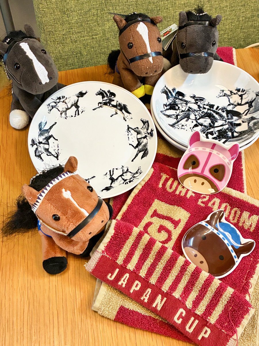 Seriaで馬のお皿やっと見つけた!! 豆皿はリフレイムっぽい芦毛は売り切れだったけど、ハルウララっぽいピンクメンコは買えました🐴🎀 せっかくなので持ってる限りのジャパンカップ勝ち馬(一頭は願望含む)達と、、 pic.x.com/Gok8E3WzAC