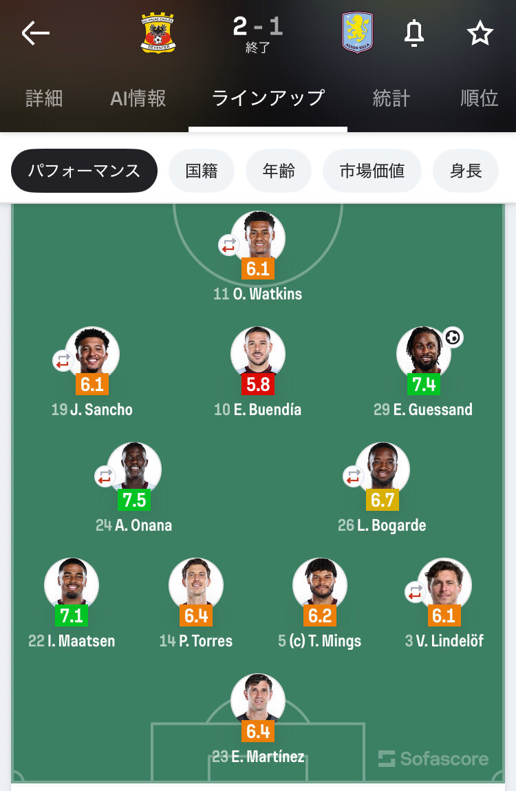 アストンヴィラ、RBリンデロフ起用しながら部分的にRWゲサンを内に入れてワトキンスとの縦関係作ってたのよくわかんないんよね。 内に入るゲサンを相手が放置してチャンスってのは実際何回かあったし効能はあったけど、もうちょい上手くパズル組めんかったんかという。