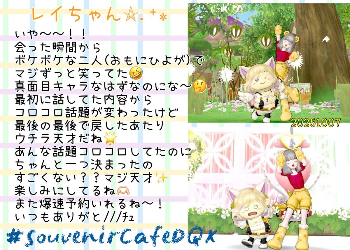 10/7 #souvenirCafeDQX さんへ また今回も爆速予約してレイちゃま笑わせちゃった〜🫶🏻 待合席で待ってたらモカ店長からハピバしてもらっちゃった❣️ 一緒に待っていたお客さんもお祝いしてくれてうれしかったぁぁ🫧 すぺしゃるありがとなの❣️ また遊びに行きますます✨ pic.x.com/ZDu5DAELGz