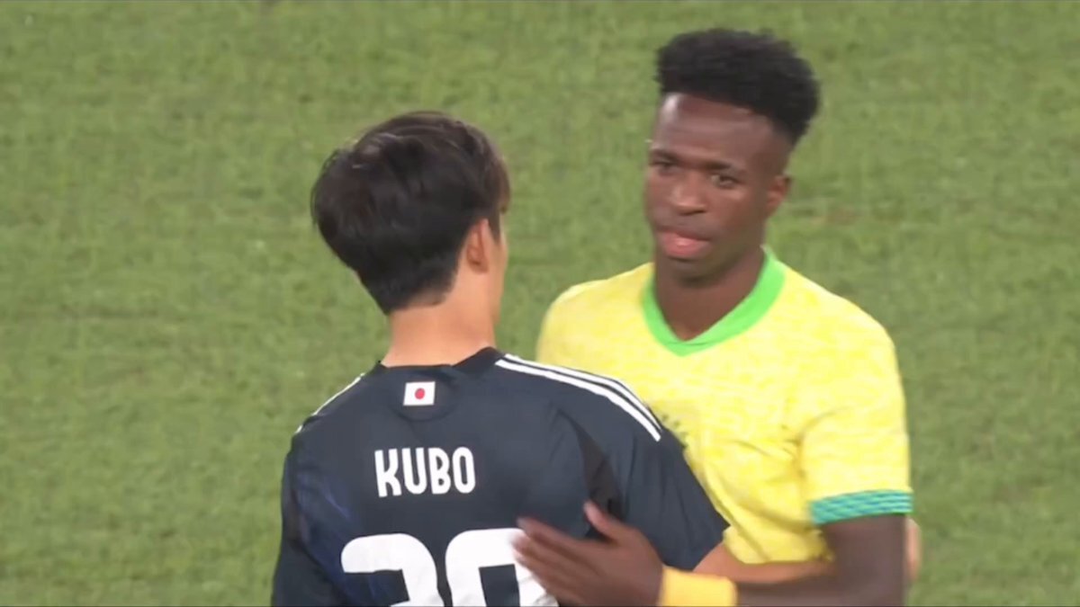 キックオフ直前の談笑シーンがアツい! 久保建英がブラジル代表ヴィニシウスと「ただ喋ってるだけなのに」大盛り上がり!「ヴィニとタケの画はマジで良い」 #サッカー批評 #久保建英 #ヴィニシウス・ジュニオール #サッカー日本代表 #レアル・マドリード trib.al/hDFou4h