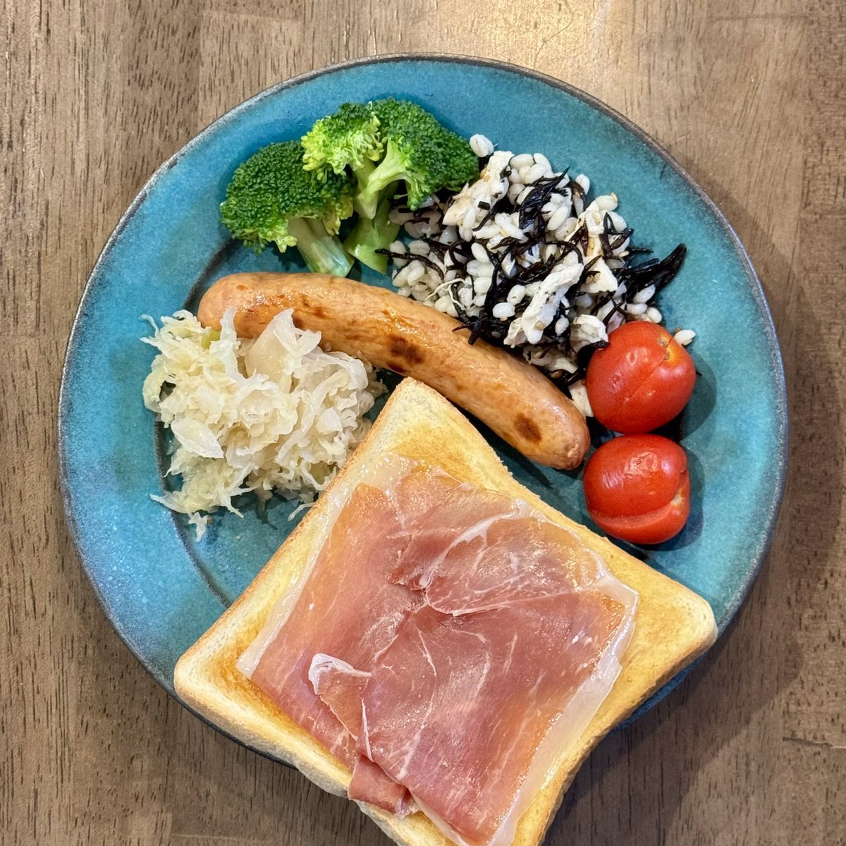 日曜のささやかな楽しみ,一茂×かまいたちゲンバを見ながら食べる遅い朝ごはん. お皿のサイズを間違えた😌 pic.x.com/rPW3hJBrxZ