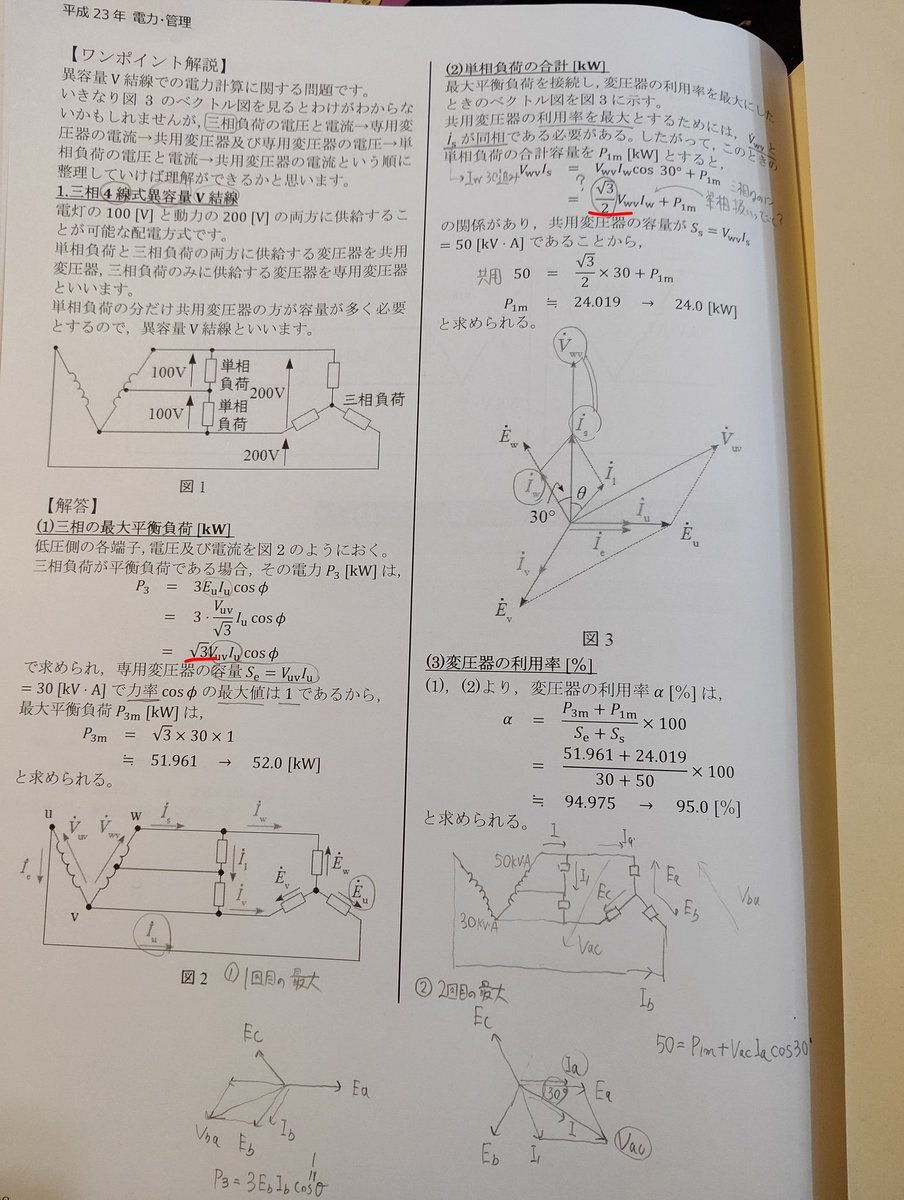 何回もやっているが、完璧に理解したとは言えない…はっきり言って三相4線式異容量V結線はムズい😮‍💨 pic.x.com/YRFdBld9rj