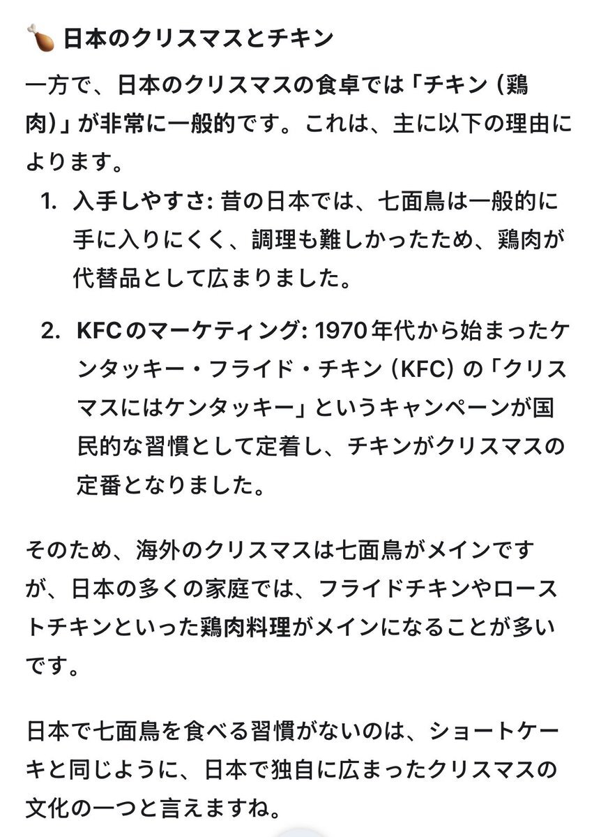 おはようございます☔️少し雨。キリスト教徒で無いしクリスマスイブにロマンティックなイベント参加予定はございません。日本ではケーキを食べるけど海外では一般的でないこと知ってました?不二家など洋菓子店が始めて小麦自由化もあり1952年爆発ブーム。クリスマスにKFCも日本独自。良い1日を🙇♂️ pic.x.com/M8YXDug3kz