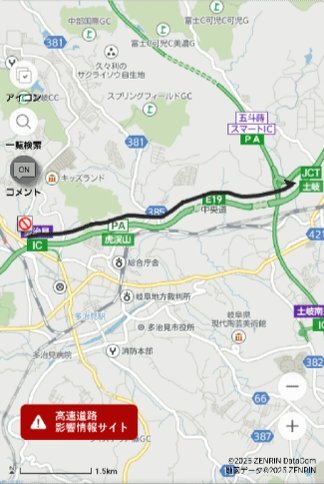 岐阜県の中央道(上り・東京方面) 【事故 通行止め】 大型貨物含む3台 多治見IC→土岐JCT(虎渓山PA付近) 三連休開け 朝 リニューアル工事対面通行区間 上り多治見IC出口 5km 下り内津峠PA8㌔ 国道19号渋滞 (10月14日11:25) どちらかが対向車線にはみ出したのか?(不明) 中央分離帯はラバーポールのみ pic.x.com/e13xIt5YP0 x.com/HighwayInfo0/s…