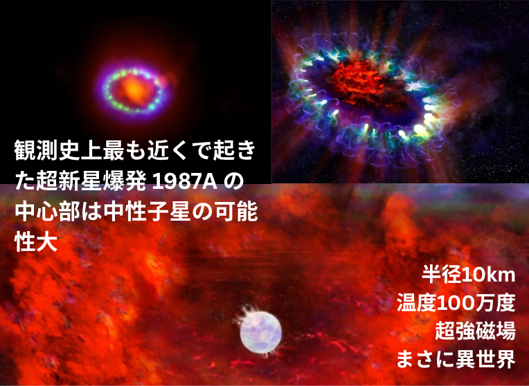 中性子星といえば、小柴先生のカミオカンデにノーベル賞をもたらした超新星爆発1987A も、その後中性子星になった線が濃厚とのこと!爆発による塵に隠れててまだ直接は見られないが、塵からの光を詳細に観測することで分かったらしい。爆発から40年間見守られ続けてきてるんだなあ。 📄The Compact pic.x.com/YkqGGqNaeq