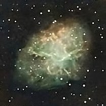 今回、やたら鮮明に写っていたのですが、よくよく見たら、この星雲を構成させた中性子星が写ってました。 輝度変化が激しすぎて、10秒という露光時間では長すぎ(偏光周期33.8ミリ秒)、側に見える恒星と繋がって、点ではなく楕円になっています。 pic.x.com/0OmMdlhdzL