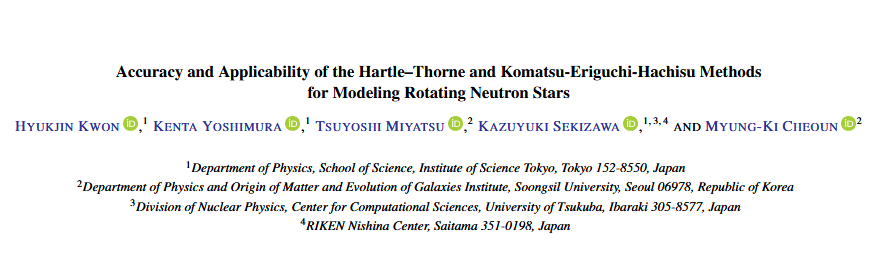 🚨プレプリントをarXivに公開✨ 論文では,高速回転する中性子星の構造を計算する一般相対論的な方法(KEH法)と摂動的な近似を用いた方法(HT法)の比較を行い,摂動的な方法の適用限界を明らかにしました💡 ✅URL: Hyukjin Kwon et al., arXiv:2511.10996 [astro-ph.HE] arxiv.org/abs/2511.10996 pic.x.com/6xbehH6JP8