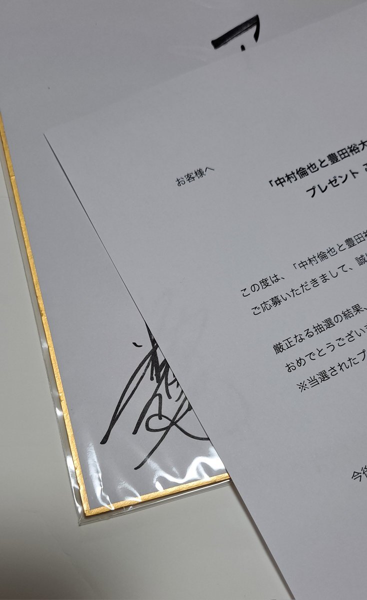 今日はトプコ様からとんでもないお品が届きまして💦 ともとよ企画のプレゼントに当選✨ 倫也くん&豊田くんのサイン入り色紙頂きました~😍これキーワード書いてたやつ。倫也くん触ってたやつ。 トプコ様。本当にありがとうございました🙇‍♀️額に入れて家宝にします😭✨ #中村倫也 #豊田裕大 #DOPE pic.x.com/k7X9YqKSeX