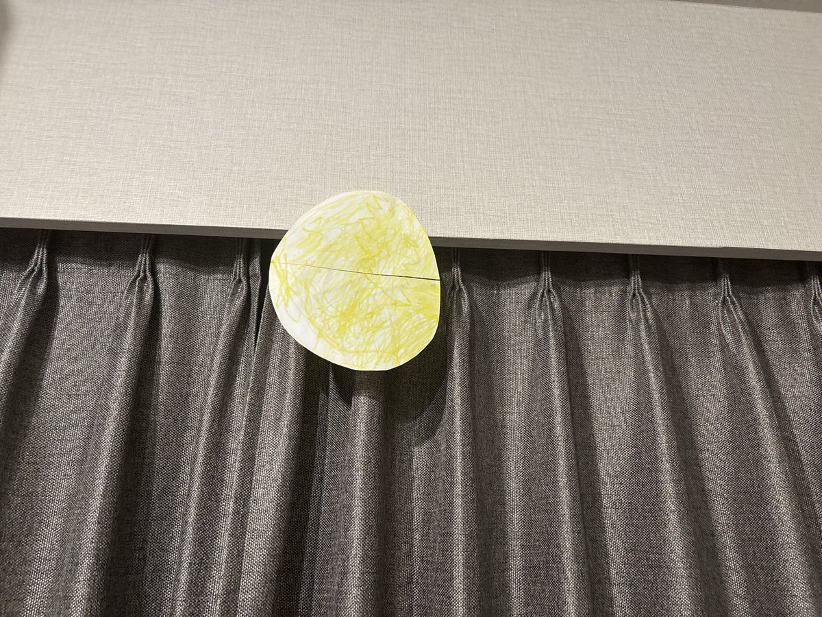 中秋の名月の日に天気が悪かったから月の絵を壁に貼って家族でお月見したんだけど、ふと「月齢に合わせて切り取っていったら誰が初めに気付くか?」と思って毎日少しづつ切り取っていったら誰にも気づかれないまま半月を迎えててワロタ pic.x.com/zdCOiD6YuS