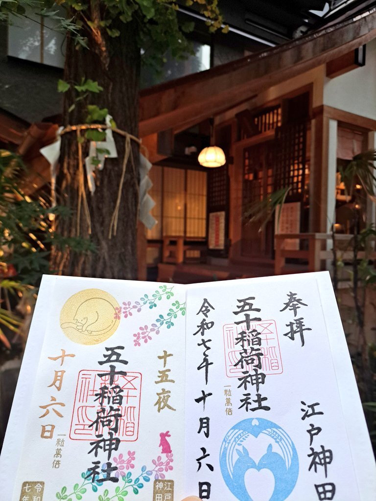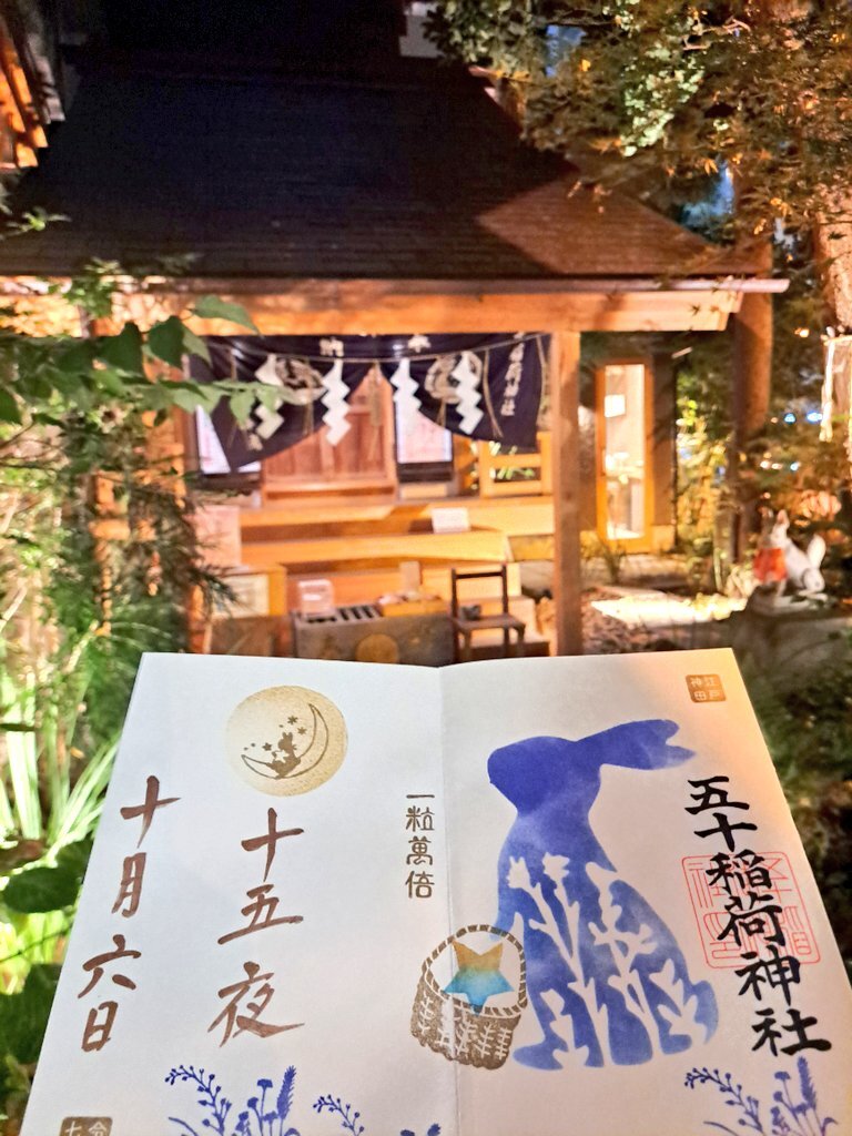五十稲荷神社🦊⛩️🌕🐇 十五夜の御朱印を頂きました🌕🐇 最近は五十稲荷神社での御朱印待ちがなかったので、早く頂けるかもと思って着いたら、1時間半待ちでした😅💦 凄い人気😆🦊 夜の五十稲荷神社と十五夜御朱印の撮影を楽しみました🦊⛩️🌕🐇😸✨ #御朱印巡り #十五夜 #五十稲荷神社 #中秋の名月 pic.x.com/4px4wTqlv0