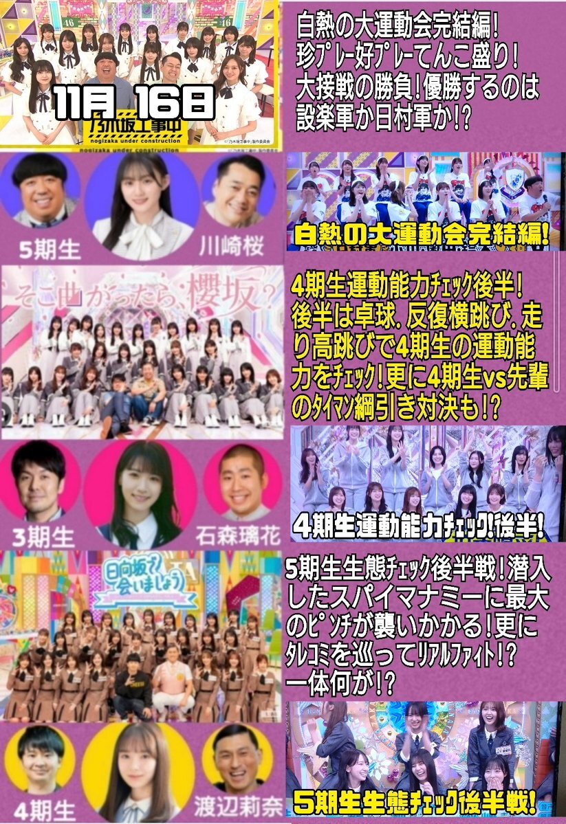 (坂道)おはようございます♬今夜の坂道三姉妹TV📺(乃木中)は[白熱の大運動会完結編!](そこさく)は[4期生運動能力チェック!後半!]そして(ひなあい)は[5期生生態チェック後半戦!]今日もいい事ありますように🤗 #坂道三姉妹TV pic.x.com/iFwOAHjhhc