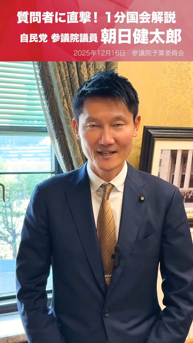 【1分国会解説】 参議院予算委員会の質疑に立った #朝日健太郎 参議院議員を直撃 こんにちは、参議院議員の朝日健太郎です。 私は本日3日目となりました、参議院の予算委員会の質疑に立たせていただきました。