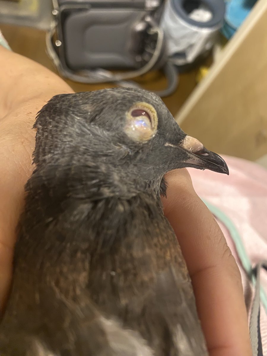保護22日目 #保護鳩 テープで止める作戦は失敗だったので次の作戦。必殺アイプチ整形。下瞼にメイクで使う二重瞼に見せるための化粧品を塗り塗りして、綿棒でいい感じに下へ引っ張って固定させます。数日は効果ありそうです。 ↓これはビフォー pic.x.com/QcCu4WOi9S