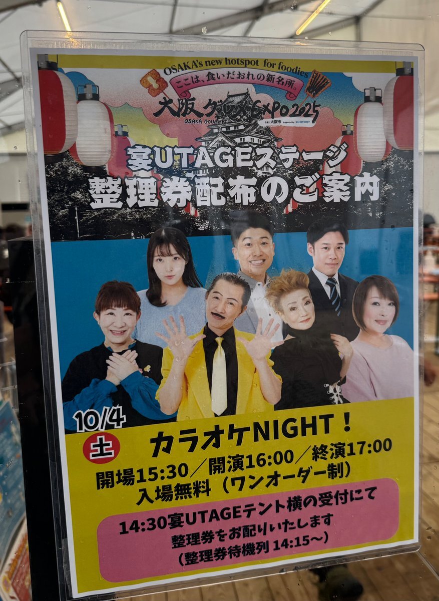 🎉【無料】カラオケNIGHT!🎉 📅 10/4(土) 🕡16:00~17:00 出演:アキ、浅香あき恵、レイチェル、末成映薫、 五十嵐サキ、咲方響、筒井亜由貴 📌観覧無料(整理券配布制) 🕠整理券配布 14:30〜|待機列 14:15〜 💺全席自由・整理番号順入場 🥂ワンオーダー制(お一人様1品以上ご注文お願いします) pic.x.com/3UnazmTYYQ