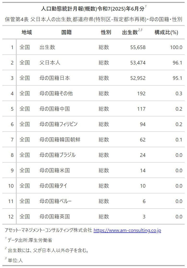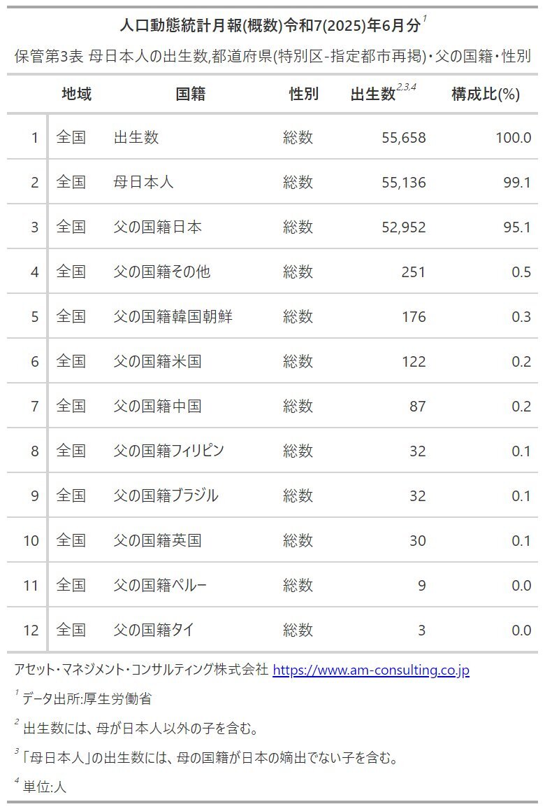 「人口動態統計月報(概数):保管第3表 母日本人の出生数-都道府県・特別区・指定都市・父の国籍別」am-consulting.co.jp/social-jpn-jin… および 「人口動態統計月報(概数):保管第4表 父日本人の出生数-都道府県・特別区・指定都市・母の国籍別」am-consulting.co.jp/social-jpn-jin… を更新しました。 pic.x.com/ALUolfJHKZ