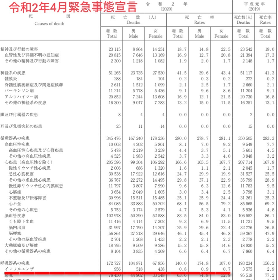 緊急事態宣言以降、インフルエンザの検査をしていなかっただけで患者数が減ったように見えているだけというなら、重症や入院患者、死亡者はそれなりに確認されているはずなんですよね🙄 人口動態統計の死亡者数を見てもインフルエンザの死亡者数は減っているし、感染対策の効果があると見るのが自然 pic.x.com/Eem1cxTkl9