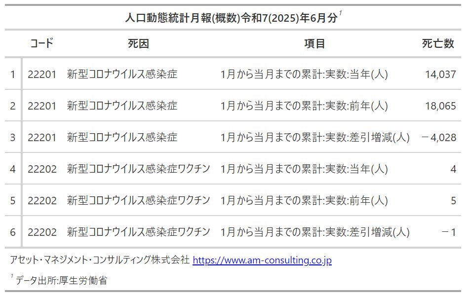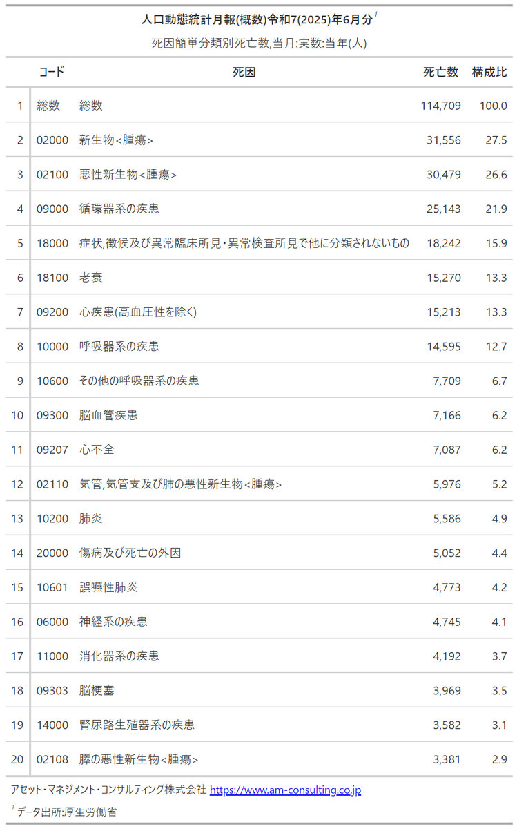 「人口動態統計月報(概数):表番号4 死因別の死亡数及び死亡率と対前年比較」を更新しました。am-consulting.co.jp/social-jpn-jin… 2025年6月の「日本における日本人の」死亡総数は114,709人。 pic.x.com/q9ZjCI2bIM