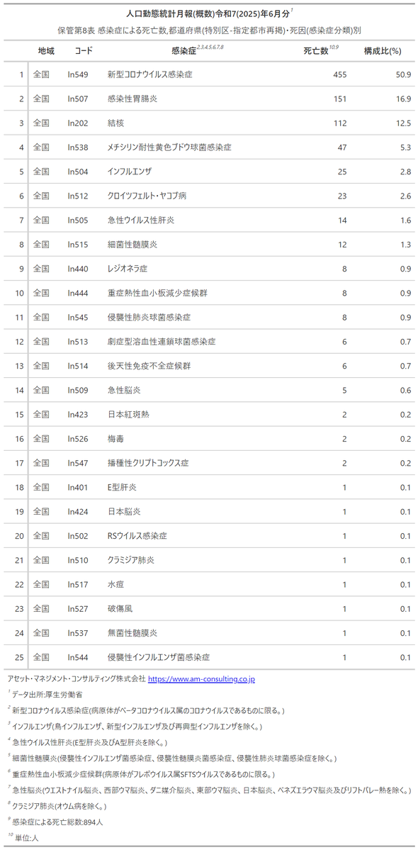 「人口動態統計月報(概数):保管第8表 感染症による死亡数-都道府県・特別区・指定都市・感染症分類別」を更新しました。am-consulting.co.jp/social-jpn-jin… pic.x.com/8L00A8OXiB
