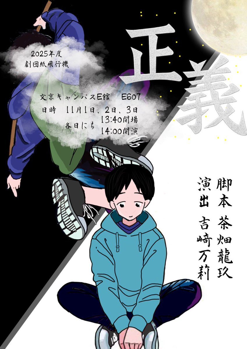 【情・報・解・禁!】 劇団紙飛行機 2025年度紅陵祭公演『正義』のメインビジュアルを公開! 異界からの侵略者と、人々を守るヒーロー。守るべき「正義」の物語を是非!その目に焼き付けてください! 場所:文京キャンパスE607 全日13時40分開場、14時開演 #拓殖大学 #紅陵祭 #演劇研究会 #正義