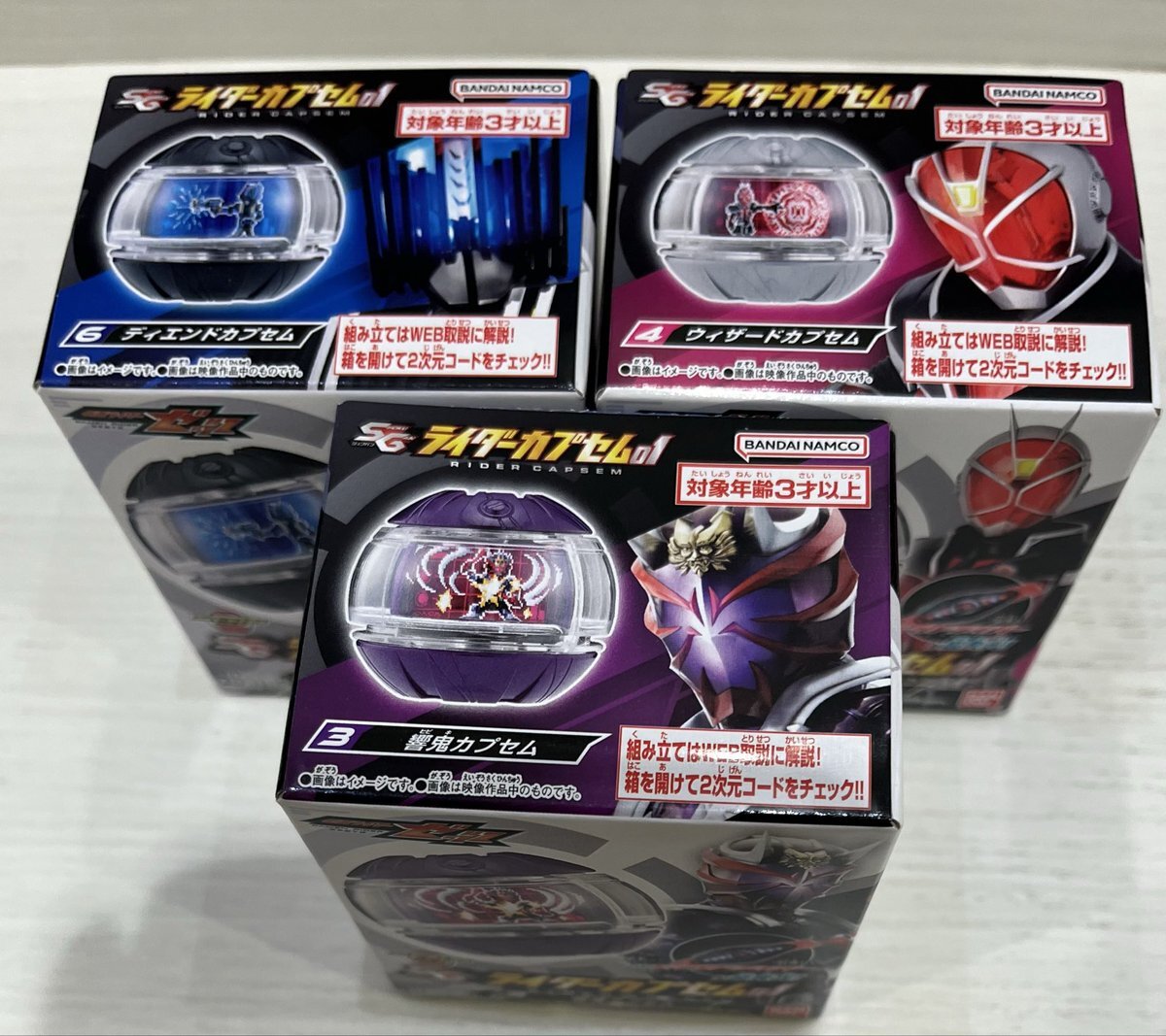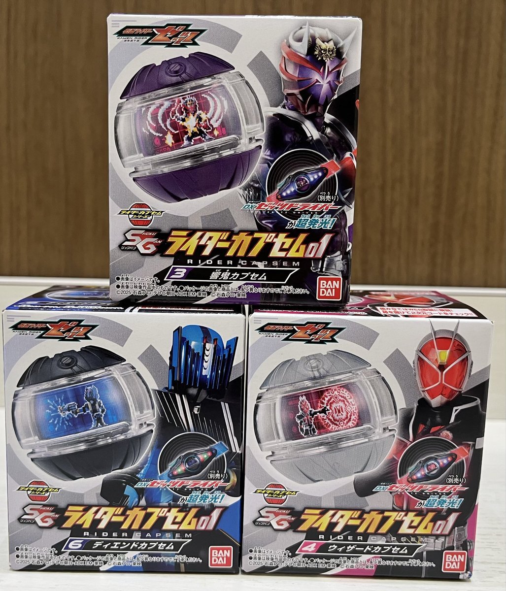 SGライダーカプセム01を発見!画像の3品をGET✨基本的に2号ライダー、3号ライダーも音声は1号と同じやから現在未所持のこの3玉を摘んだわ♬ディエンドは悩んだけど、たの幼の付録みたいなカメラ要らんからなぁ🤣 #仮面ライダーゼッツ #カプセム #SGライダーカプセム01 #響鬼 #ウィザード #ディエンド pic.x.com/8Wyu9liTx1
