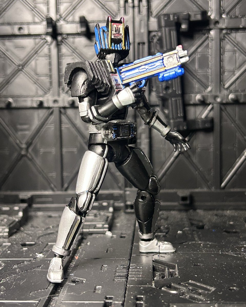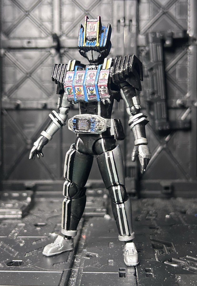 仮面ライダーディエンド コンプリートフォーム完成 掌動にソフビの胸部と頭部を移植して、ケータッチはレジンで複製 カードは印刷、ディエンドライバーはネオが余ってたので拝借 #掌動 #SHODO #仮面ライダーディケイド ? 電王 ? pic.x.com/Qa8CrVIL43