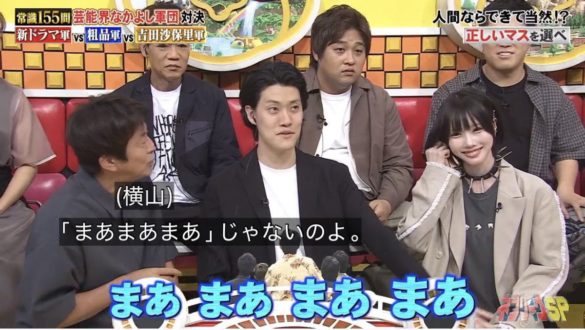 #ネプリーグ 伊藤アナ「あのちゃん、どういう活動が 中心なんですか? 粗品軍団では」 あの「イチャイチャしたり…」 横山「イチャイチャ」!?「言葉選んだ方がええよ」 粗品「まあ まあ まあ まあ」 横山「まあ まあ まあ じゃないのよ」wwwwwwwwwwwwwwwwwwwwww pic.x.com/G9xBsnPW5F