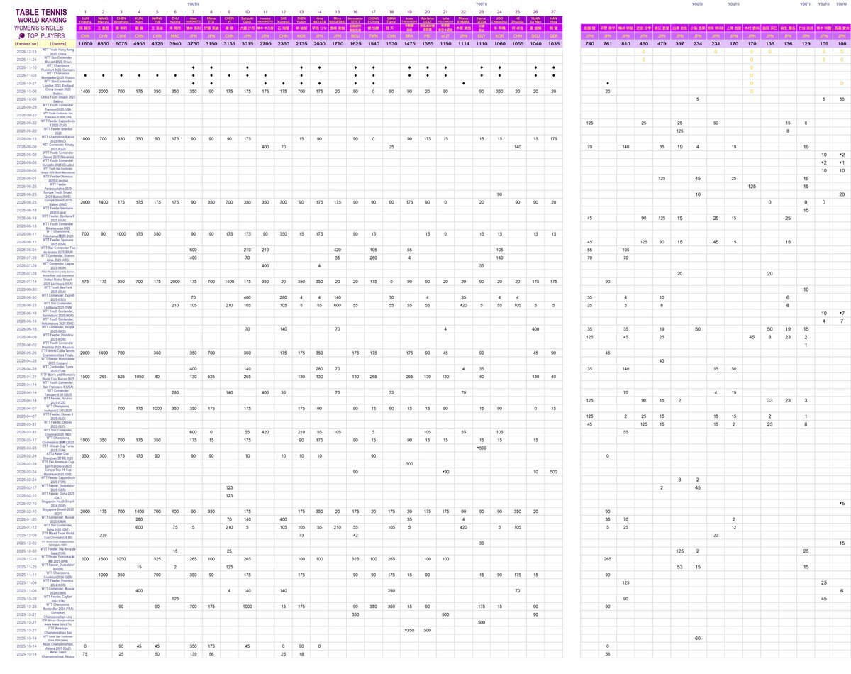 世界ランキング🏓卓球【先取り暫定ポイント 時系列】2025年10月7日分『女子シングルス』1000pts以上選手+およそ100pts以上日本選手。WTTチャイナスマッシュ2025 およびユースU19反映。張本美和・伊藤美誠・大藤沙月・橋本帆乃香・早田ひな・長﨑美柚・木原美悠(※敬称略) ダイヤ♦マーク出場予定 pic.x.com/IhX9kx1HU4