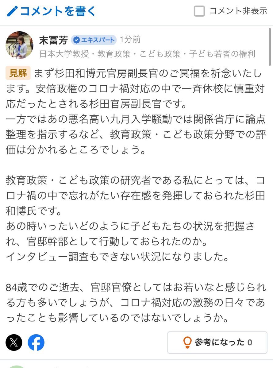 #一斉休校 #九月入学 コメントしています 安倍政権で一斉休校には慎重姿勢で 九月入学は関係省庁に指示を出された 杉田元官房副長官のご冥福を祈念いたします 杉田和博氏が死去 84歳 安倍、菅両政権で官房副長官(毎日新聞) #Yahooニュース news.yahoo.co.jp/articles/bcc18… @QuattroVageenaG pic.x.com/Ew9u6JHm7q