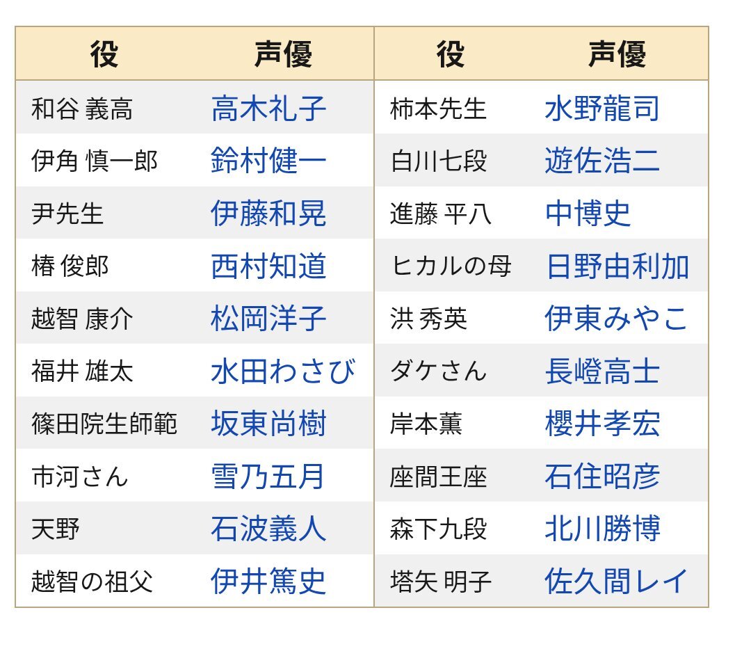 「ヒカルの碁」のアニメ、声優さん誰いるのかググッてみたら、ここで二度見してびっくりしちゃった!?!?! えっ、鈴村健一・遊佐浩二・櫻井孝宏・岸尾だいすけ・小西克幸・吉野裕行いるの!?!?!?!? マジでヒカルの碁のアニメますます気になるんだけど!!!!!!! mau2.com/anime/hikaruno…
