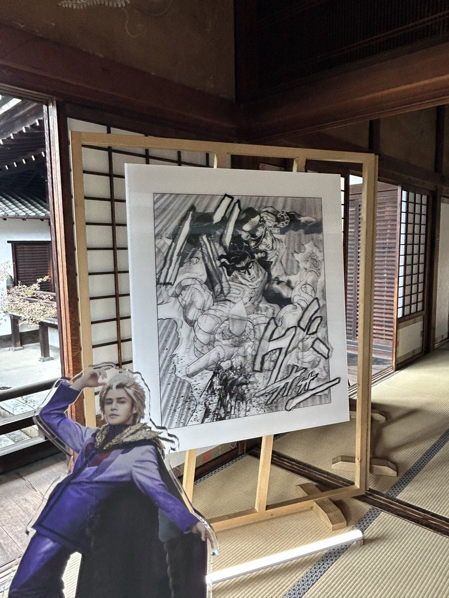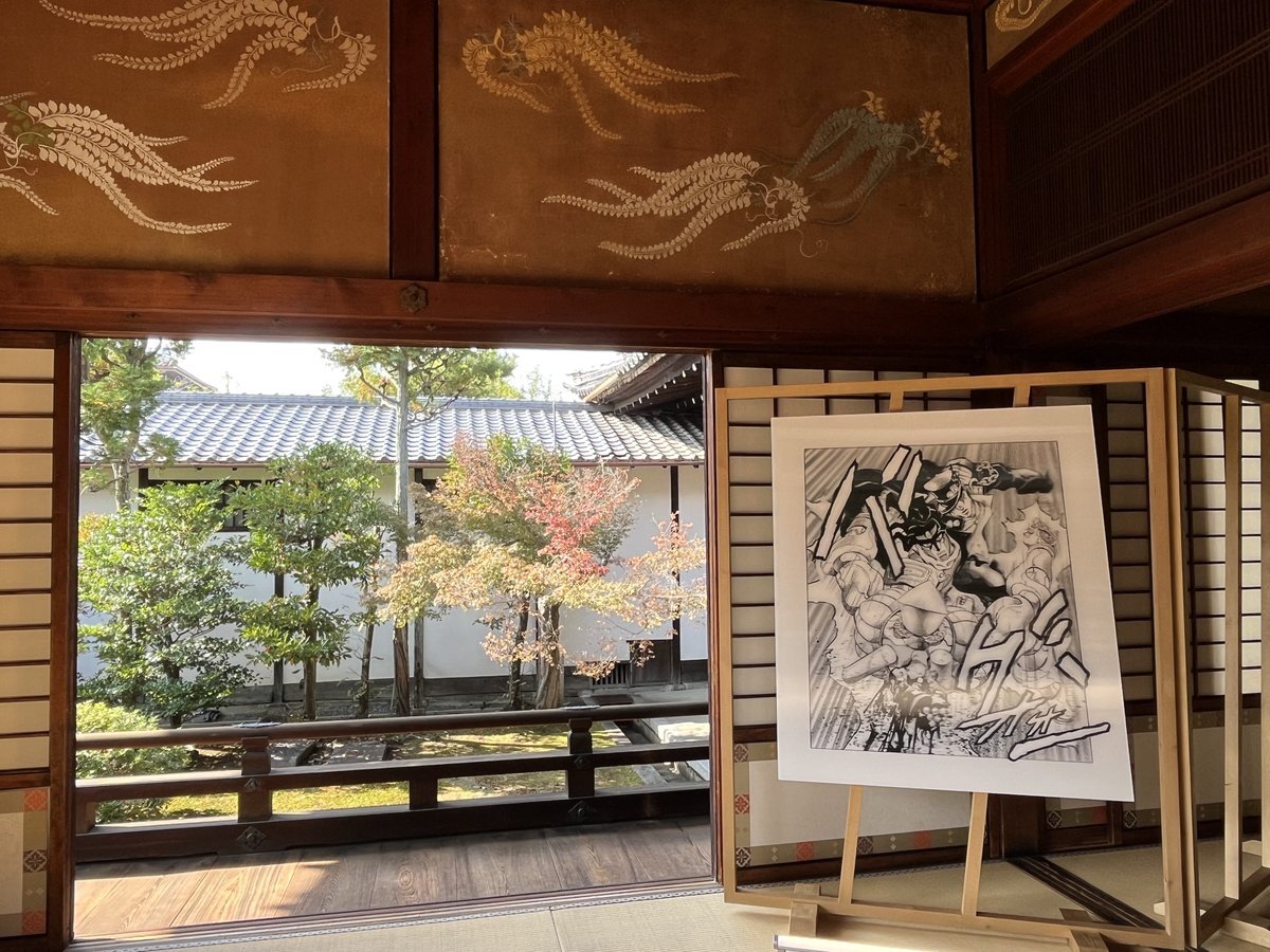 東本願寺、白書院にて荒木飛呂彦先生のジョジョ作品展拝んできた🙏空気が、空間が、匂いが、全て作品の一部のような特別な展示会だった。黄金体験。1番奥の、陽の光の差さない薄暗い場所に鎮座する優しい表情のDIO様が印象的で、ポストカードが欲しかった。 pic.x.com/8pR3r8ntzY